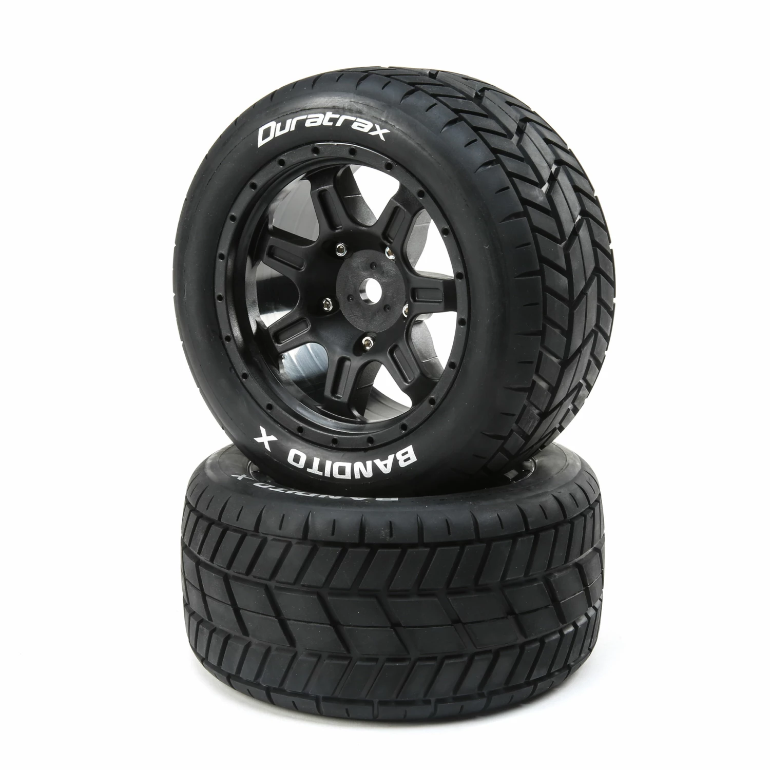 Duratrax Bandito ST Belt 3.8" Mounted Front/Rear Tires .5 Offset 17mm, Black (2) for Tires & Wheels
