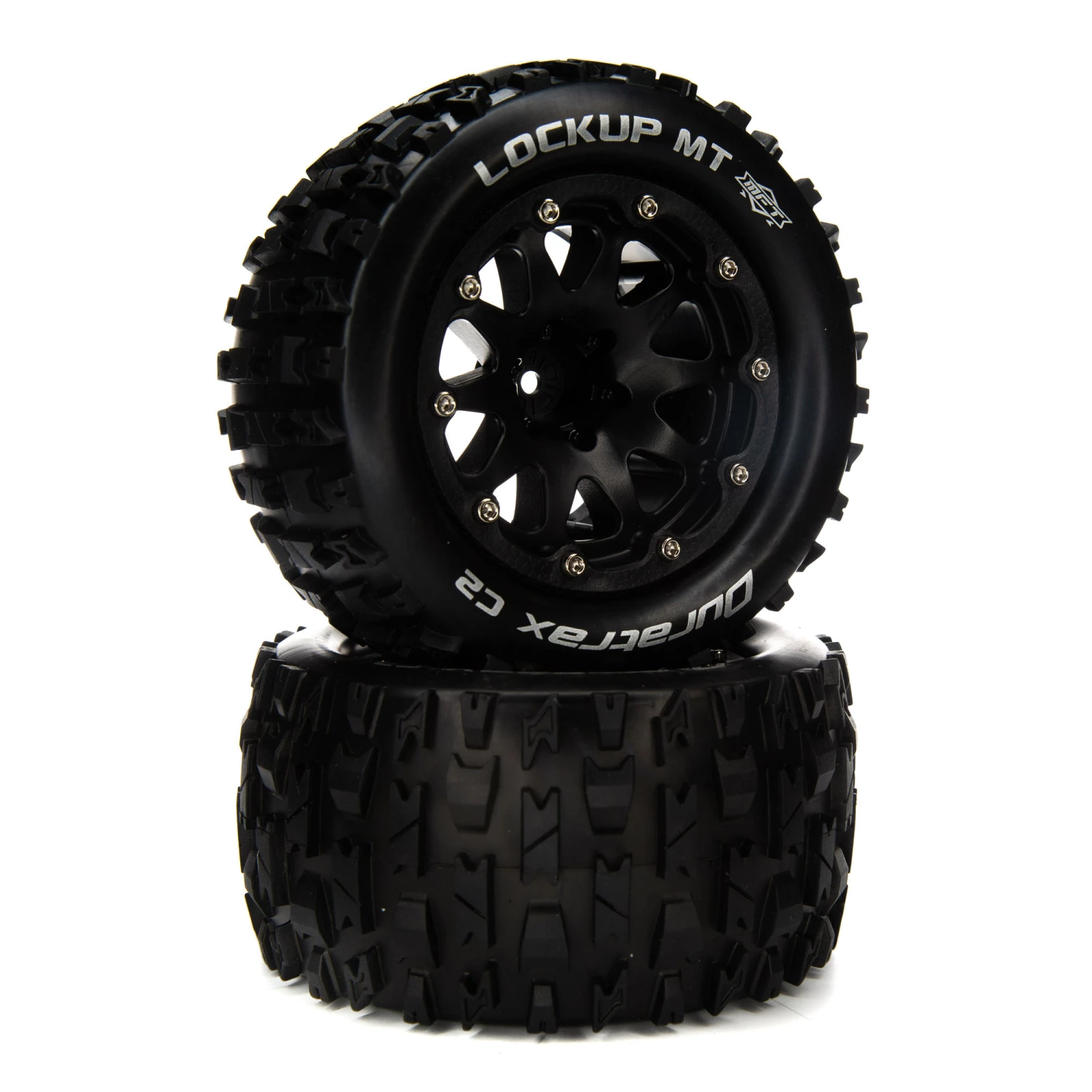 Factory-mounted, these Duratrax® LOCKUPâ„¢ MT front/rear tires for the 1/10 scale ARRMA® GRANITEâ„¢ 4X4 BLX Monster Truck feature a tread pattern that’s perfect for running on a wide range of surfaces — including asphalt, grass, and loose or hard-packed soil — and in wet or dry conditions. Molded from a durable black composite plastic, the 14mm hex wheels measure 2.8 inches (70.2mm) wide and 5.4 inches (136.9mm) in diameter. The belted tires include one-piece foam inserts and white sidewall markings, and are made from high-traction C2 soft compound. Sold in pairs.