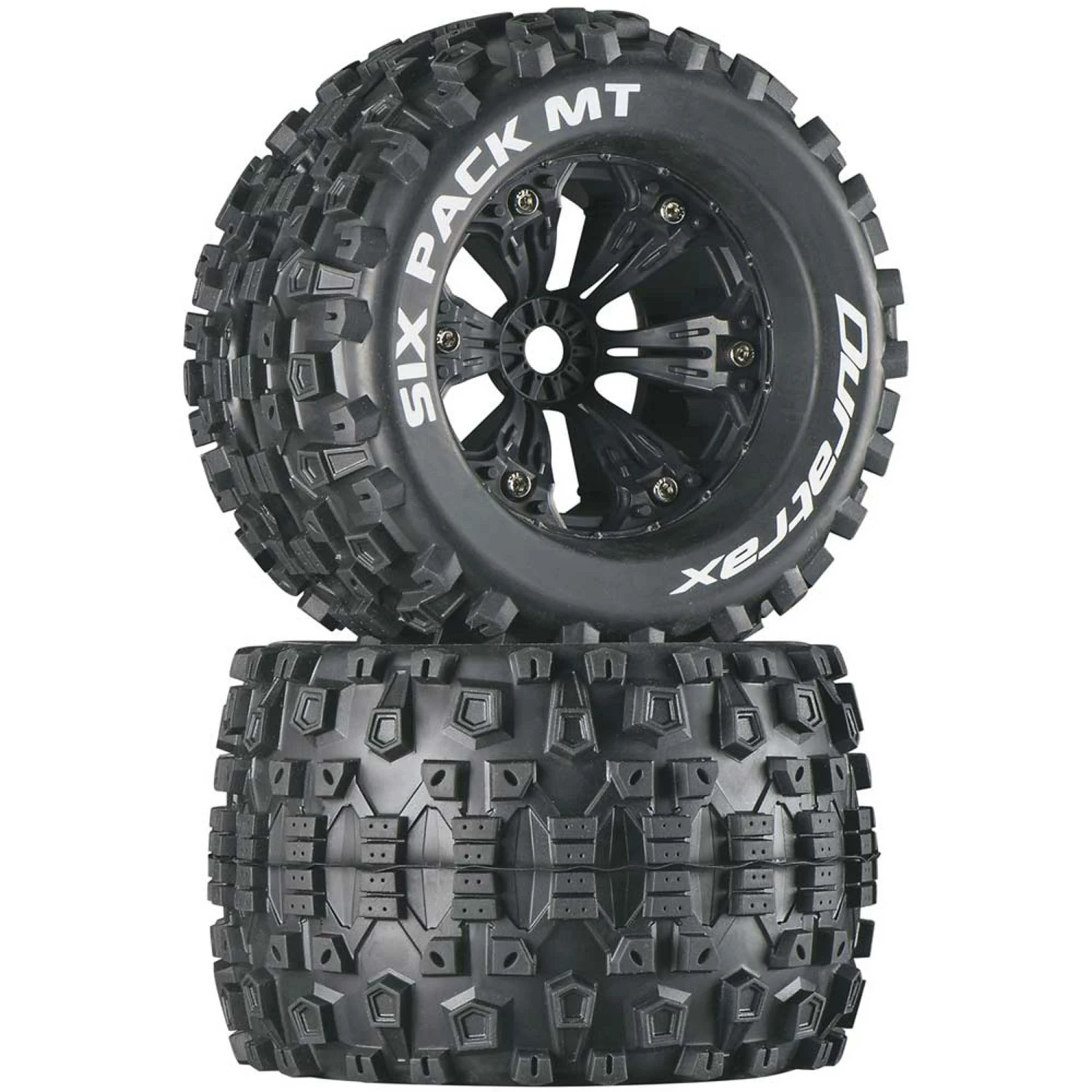 - (2) Duratrax 3.8″ Six Pack MT Tires with Foam Inserts and 6-Spoke Wheels